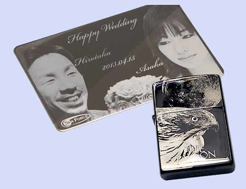 写真をマーキングすることが可能です。繊細なレーザーで彫刻するので、綺麗な写真をマーキングすることが可能です。